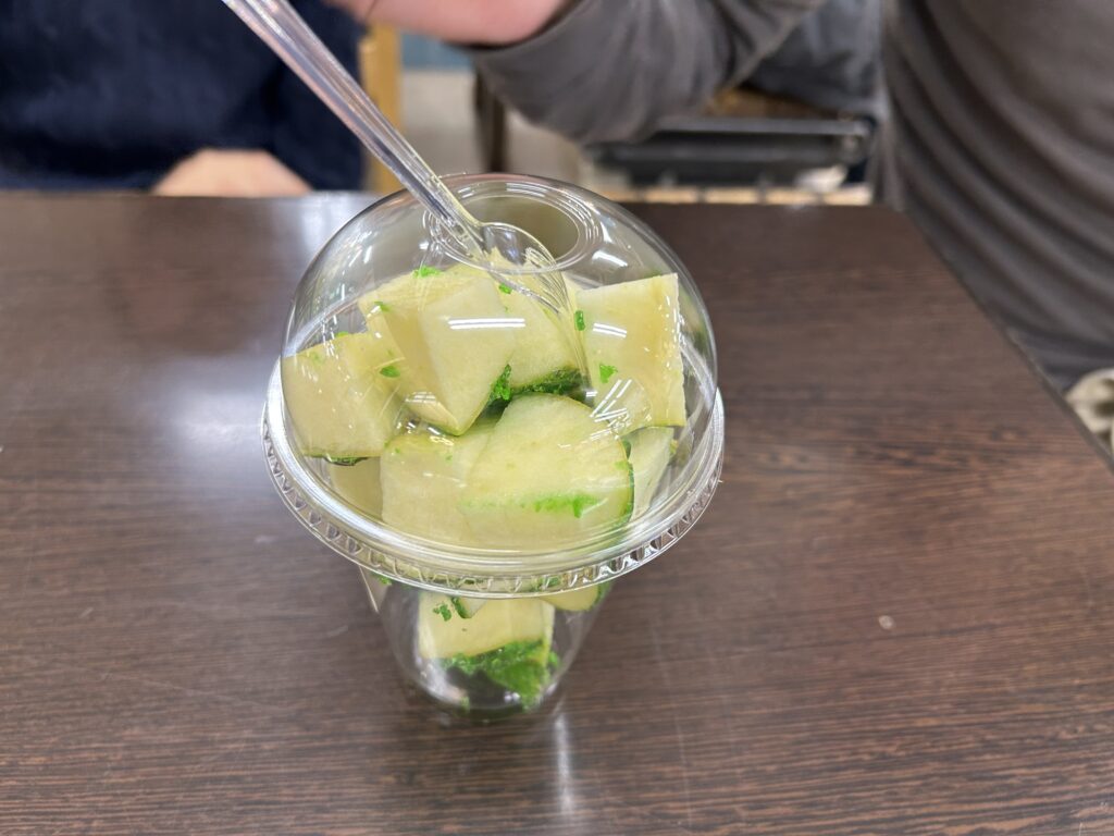 最近はカットしてくれてタッパーに入れてくれてありがたいです。
