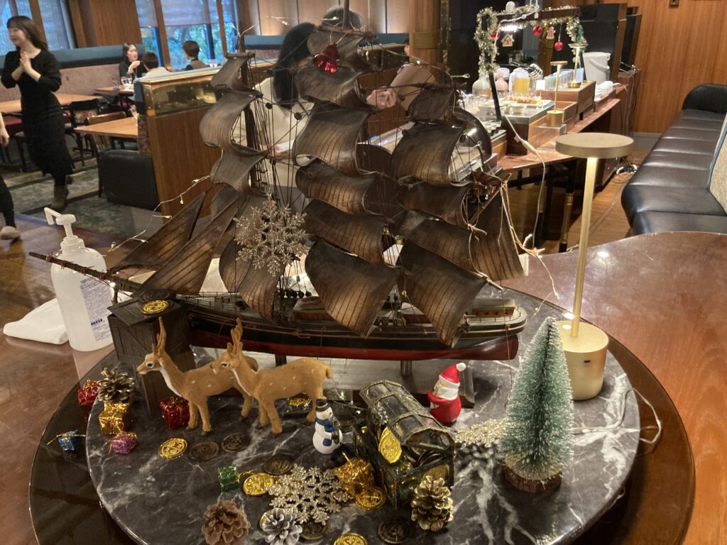 クリスマス×帆船のディスプレーが素敵^^
